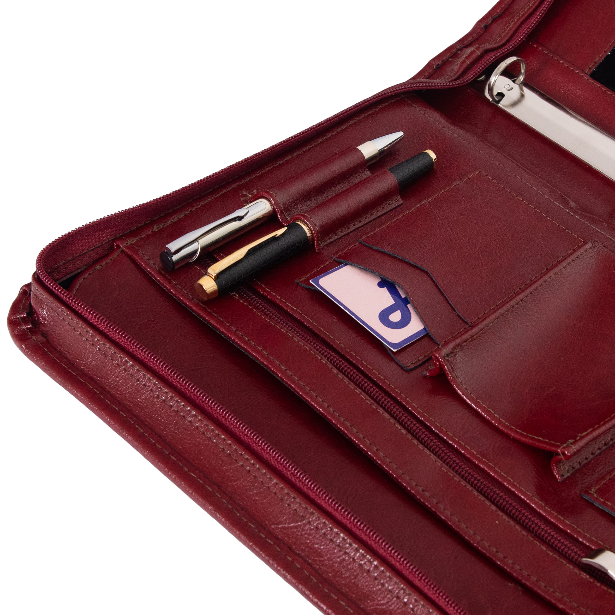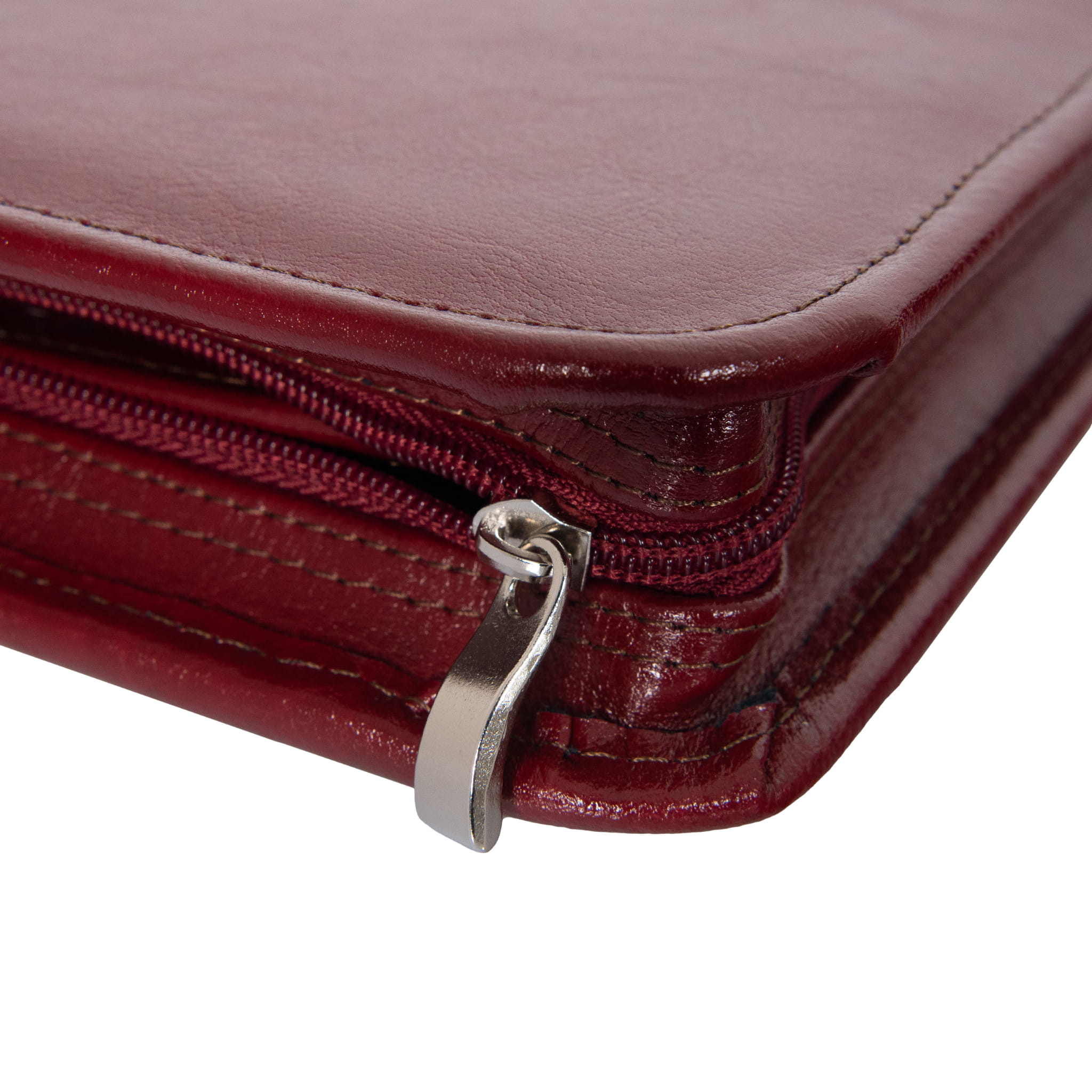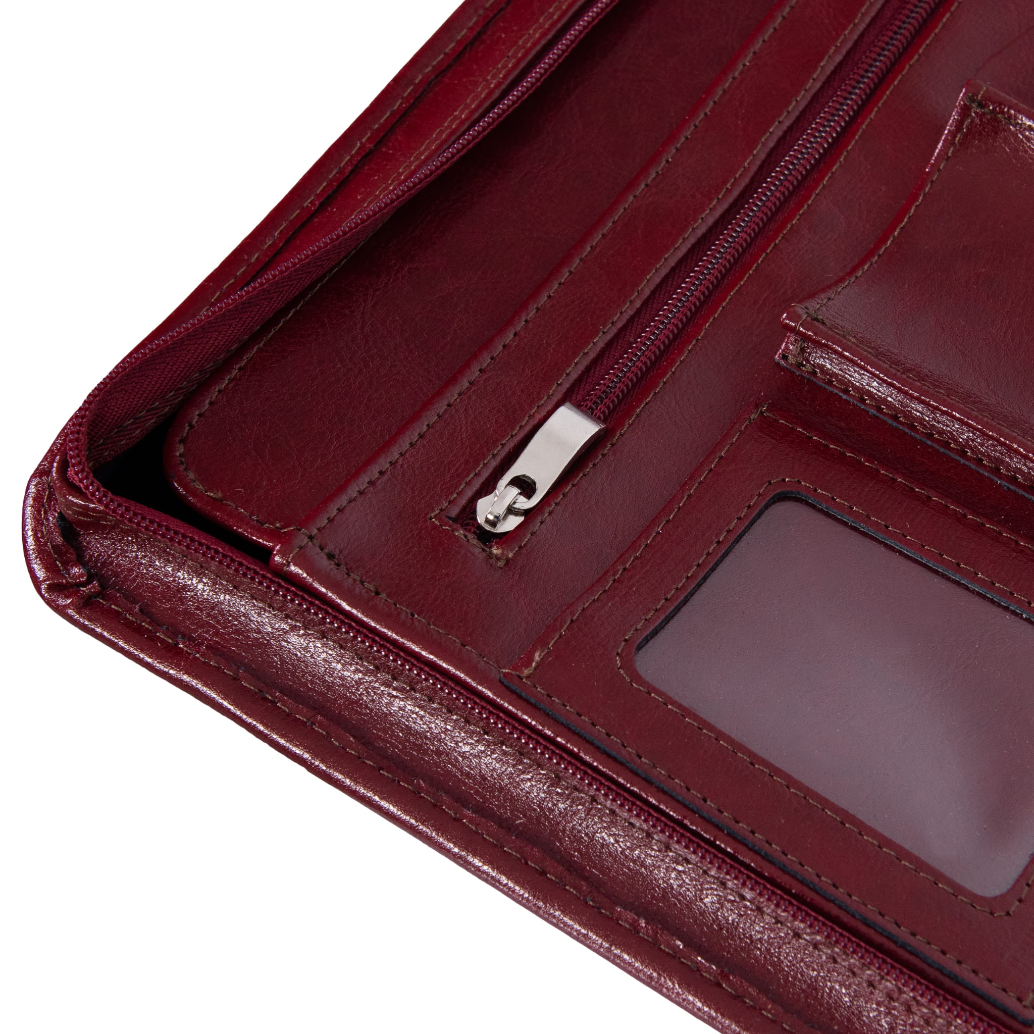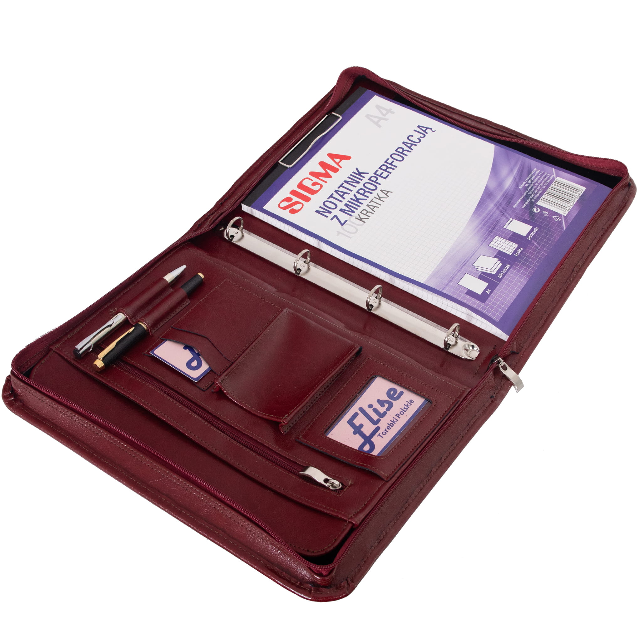 Skóra wykorzystana do stworzenia aktówki na dokumenty jest miękka w dotyku i niezwykle gładka. Odpowiednie przygotowanie materiału sprawia, że jest odporny na czynniki zewnętrzne, takie jak brud czy wilgoć. Kolor aktówki jest intensywny i trwały. Bordo świetnie sprawdzi się zarówno w czasie eleganckich wyjść, jak i na co dzień.