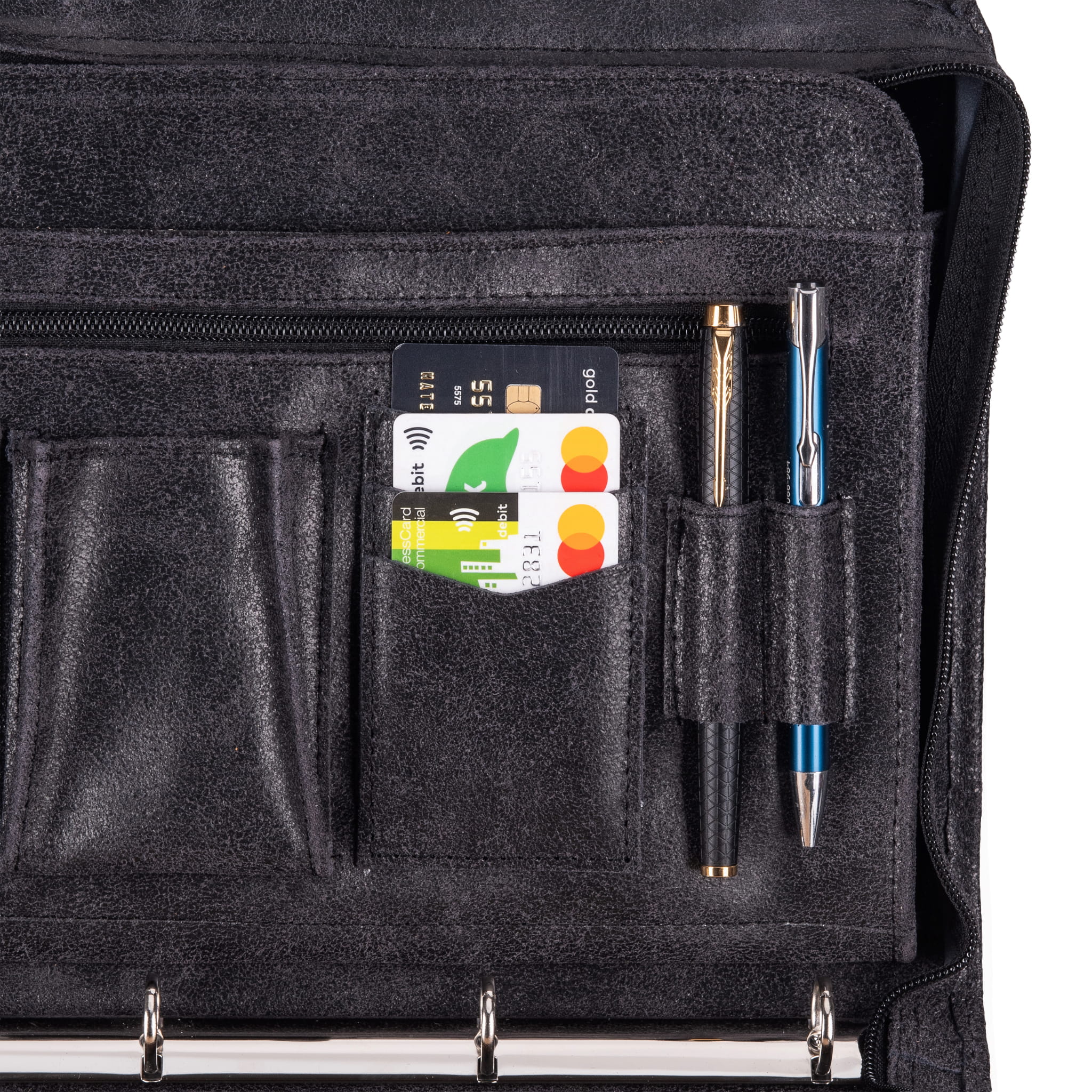 Aktówka męska skórzana ma zapinane na zamek błyskawiczny kieszonki, a także miejsce na wizytówki, telefon komórkowy, dowód tożsamości oraz długopisy. Wszystkie przegrody i ich zamknięcia są solidnie wykonane i dobrze dopasowane, aby zapewnić bezpieczeństwo przechowywanym przedmiotom.