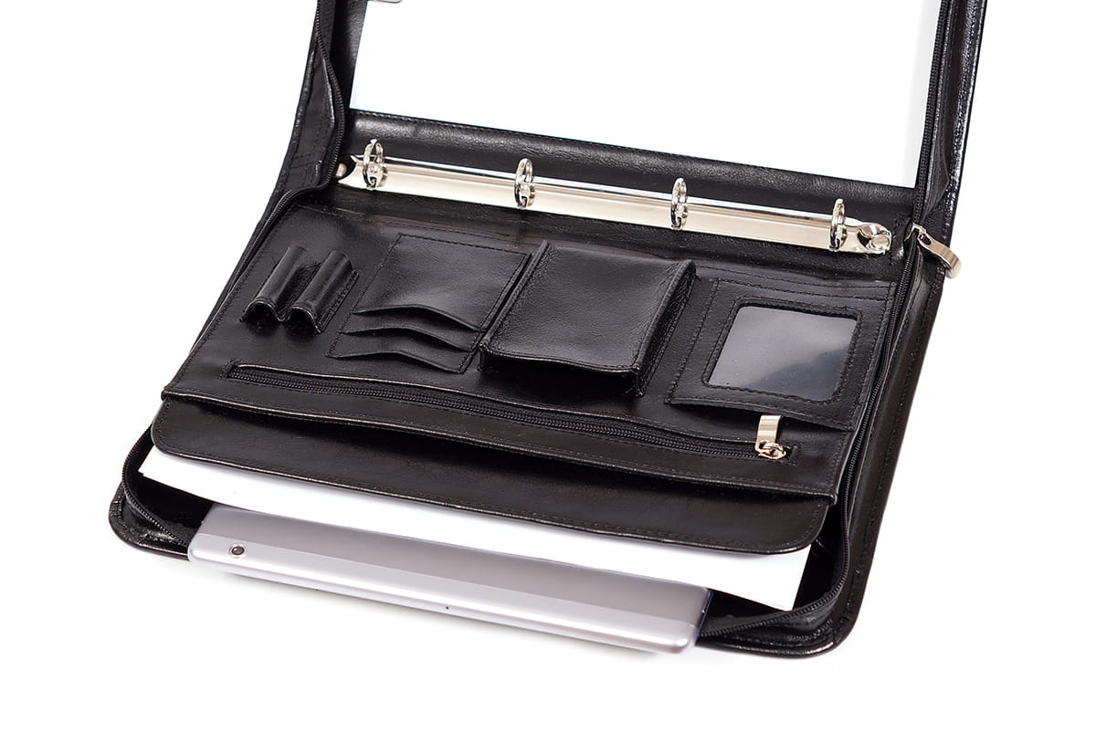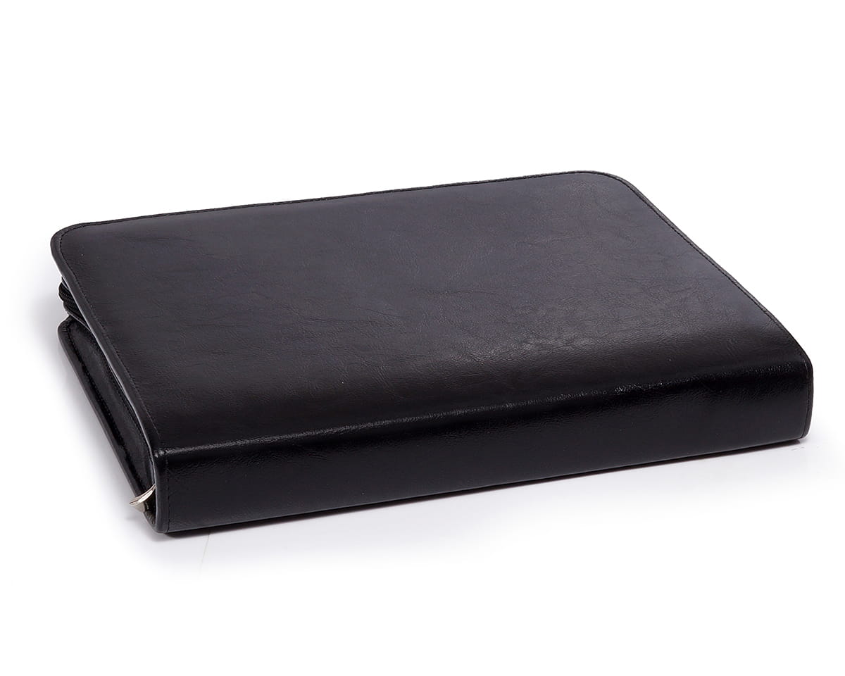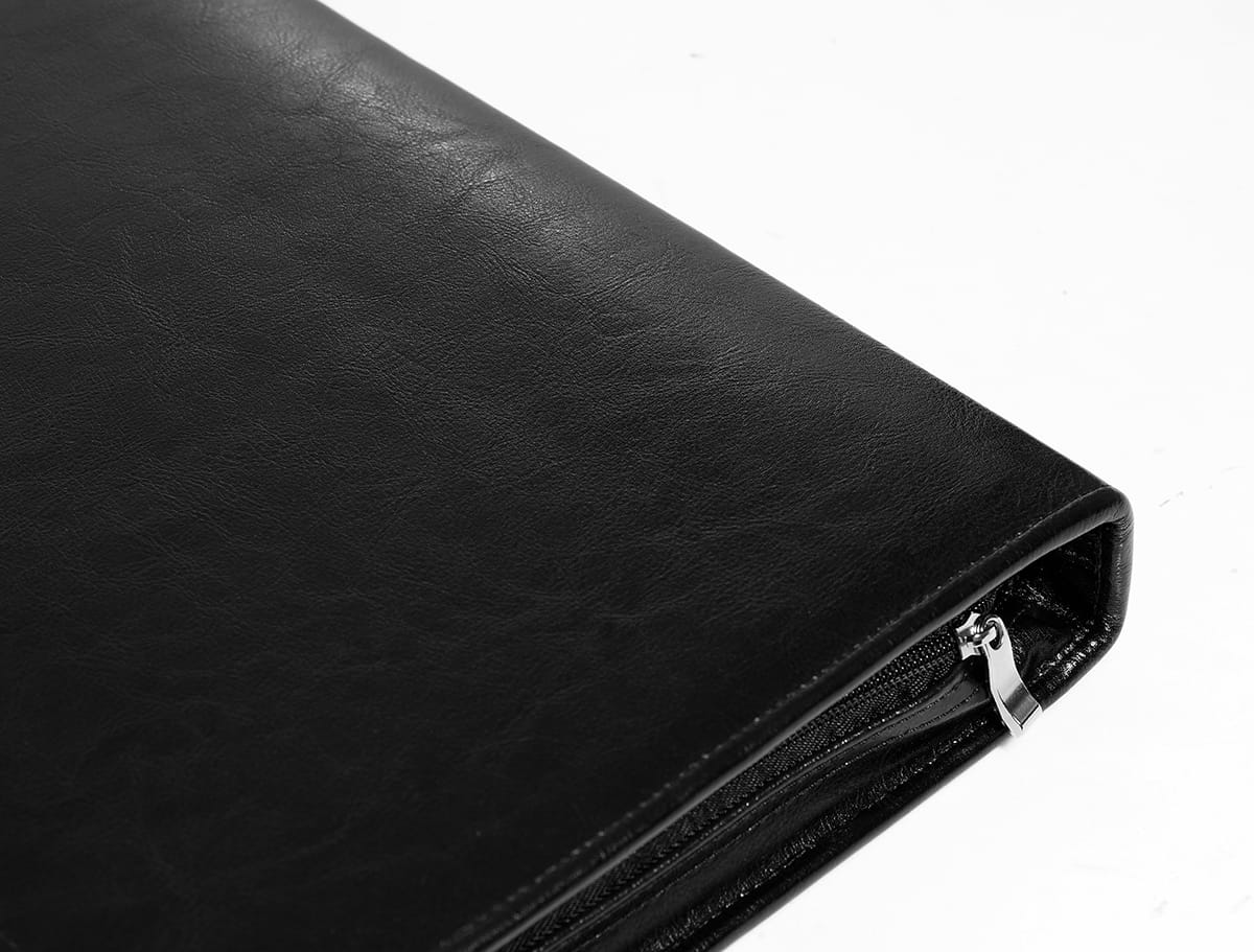 Skóra wykorzystana do stworzenia aktówki na dokumenty jest miękka w dotyku i niezwykle gładka. Odpowiednie przygotowanie materiału sprawia, że jest odporny na czynniki zewnętrzne, takie jak brud czy wilgoć. Kolor aktówki jest intensywny i trwały. Czerń świetnie sprawdzi się zarówno w czasie eleganckich wyjść, jak i na co dzień.