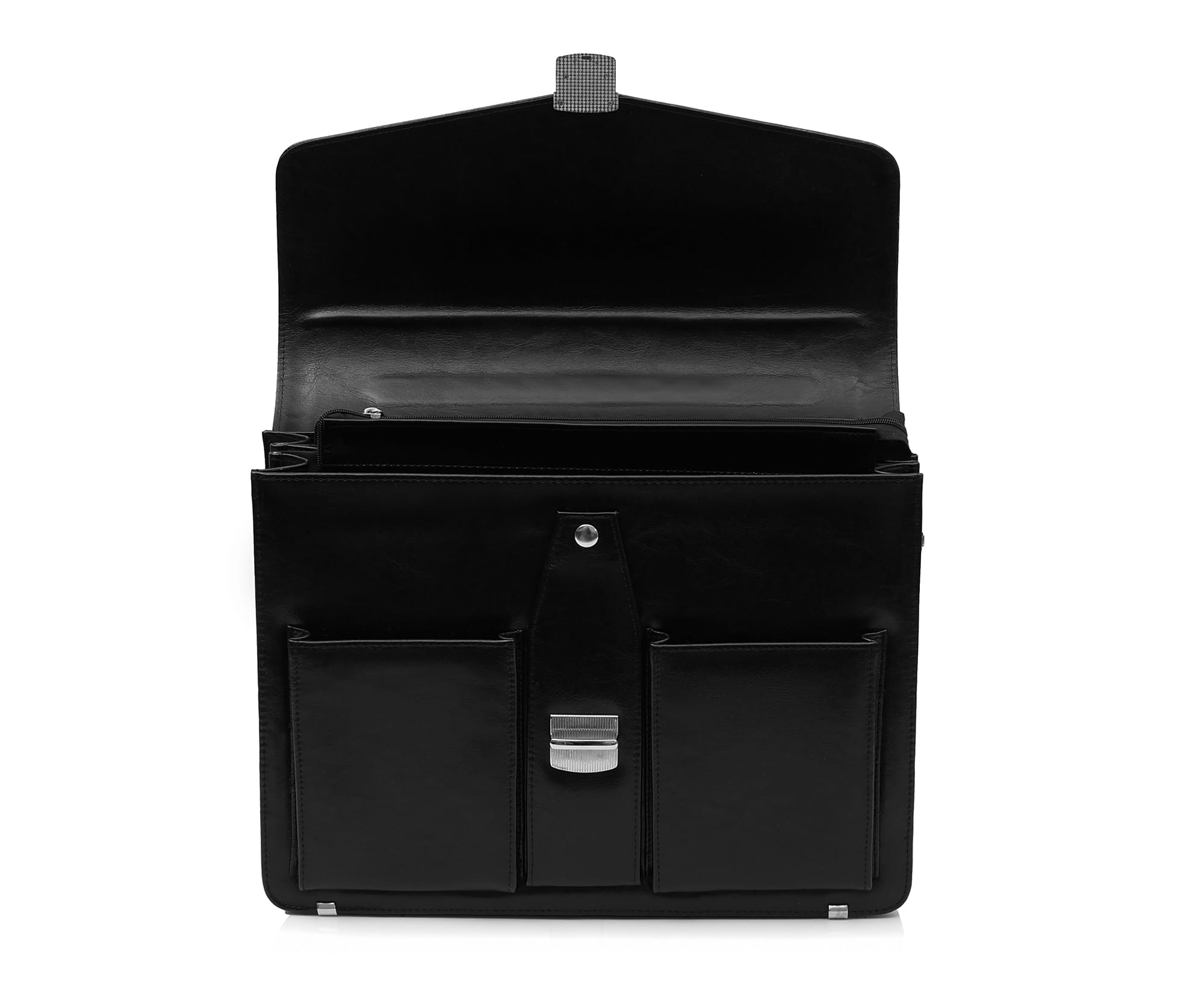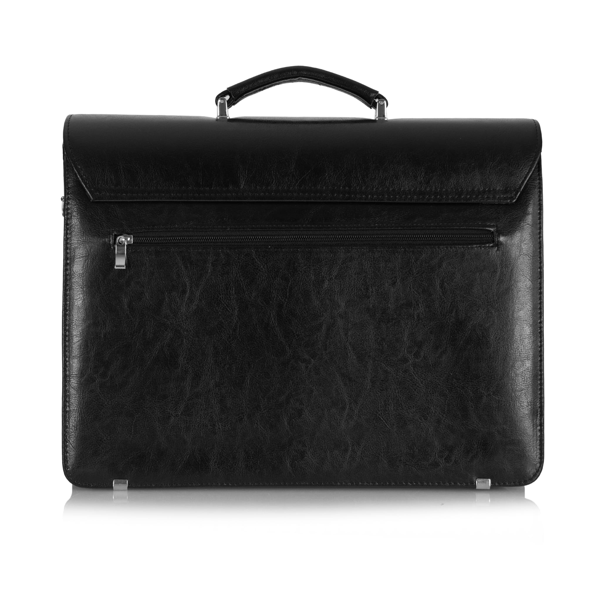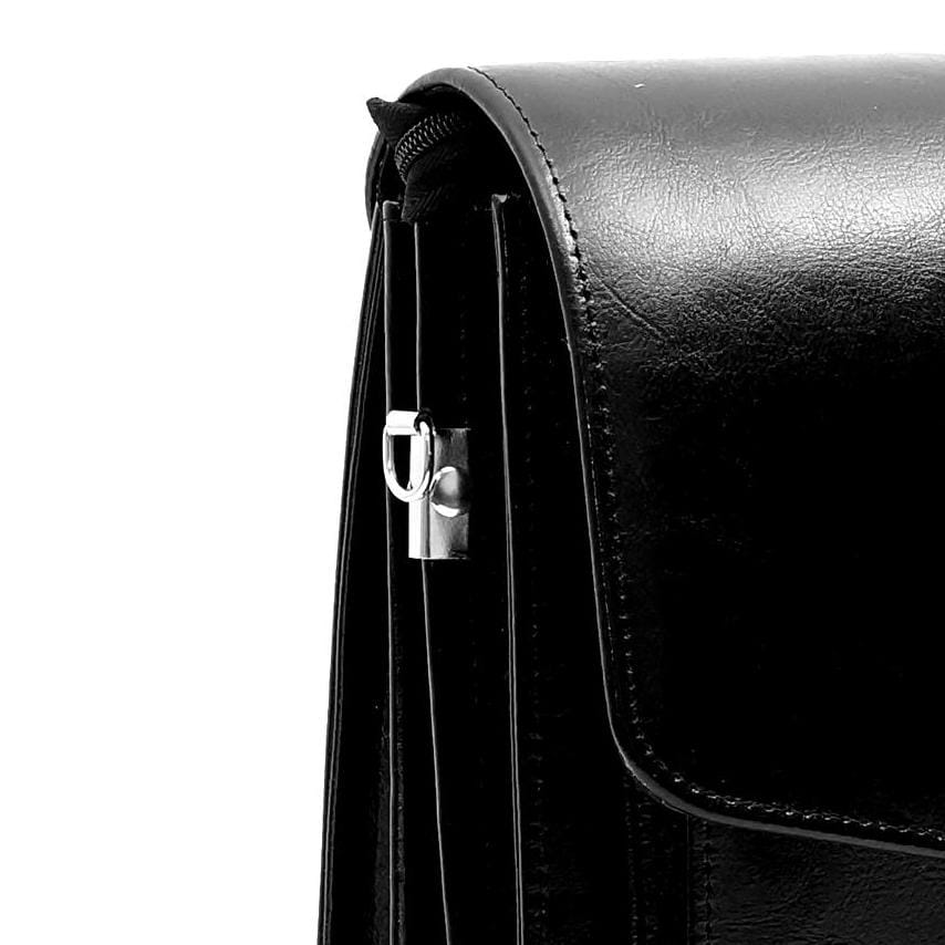 Wewnątrz teczki znajdują się 3 przestronne komory, w tym jedna zapinana na zamek. Z kolei na zewnątrz, w tylnej części, znajduje się niewielka kieszonka na drobiazgi. Dzięki dużej ilości przegród bez problemów zmieścisz w niej wszystkie niezbędne do pracy rzeczy.