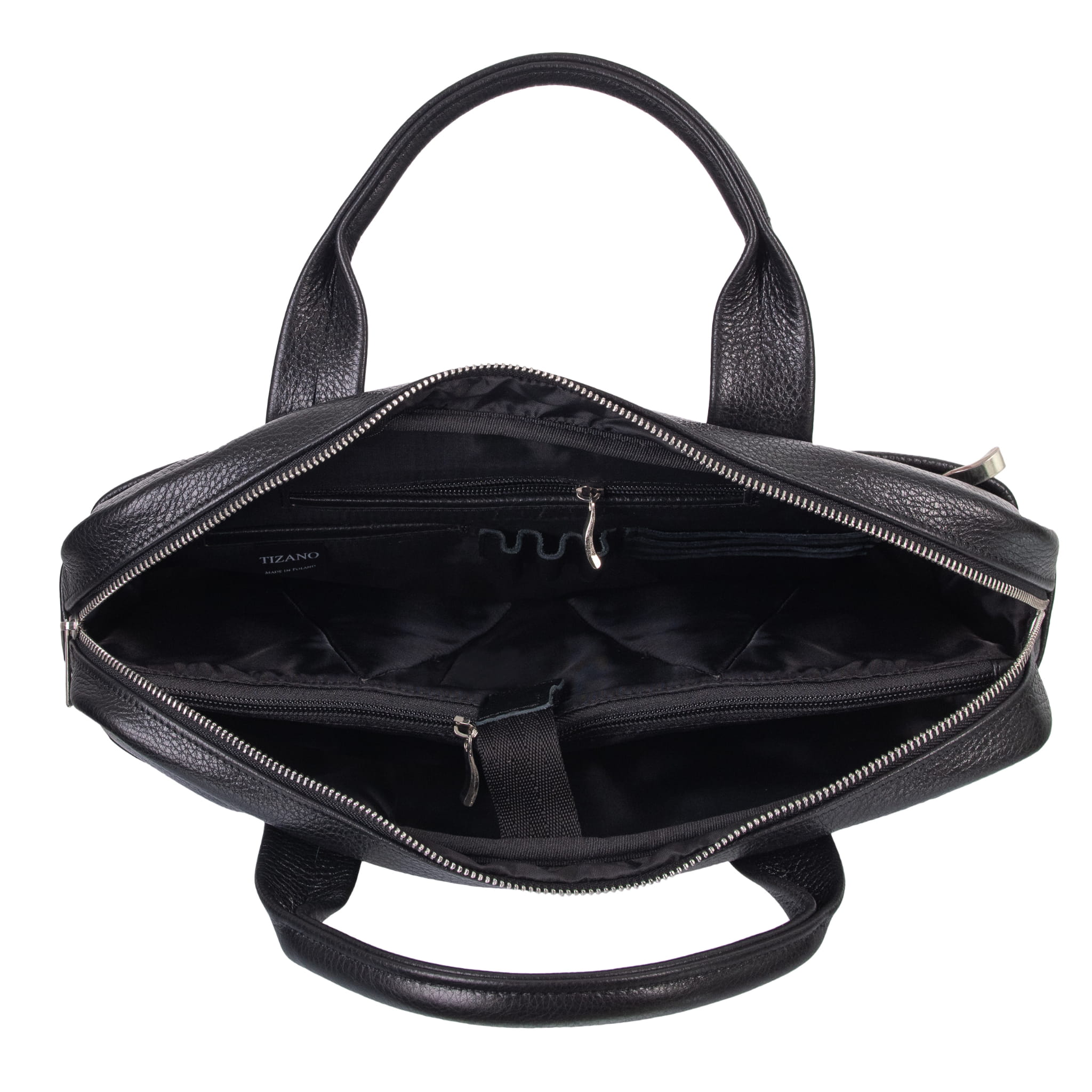 W skórzanej torbie Tizano zmieścisz bardzo wiele! Na pewno znajdziesz w niej miejsce dla wszystkich rzeczy, które są Ci potrzebne na co dzień. Do Twojej dyspozycji pozostają 2 bardzo pojemne kieszenie wewnętrzne, dodatkowa kieszeń zapinana na zamek błyskawiczny oraz mniejsze przegródki na drobiazgi.