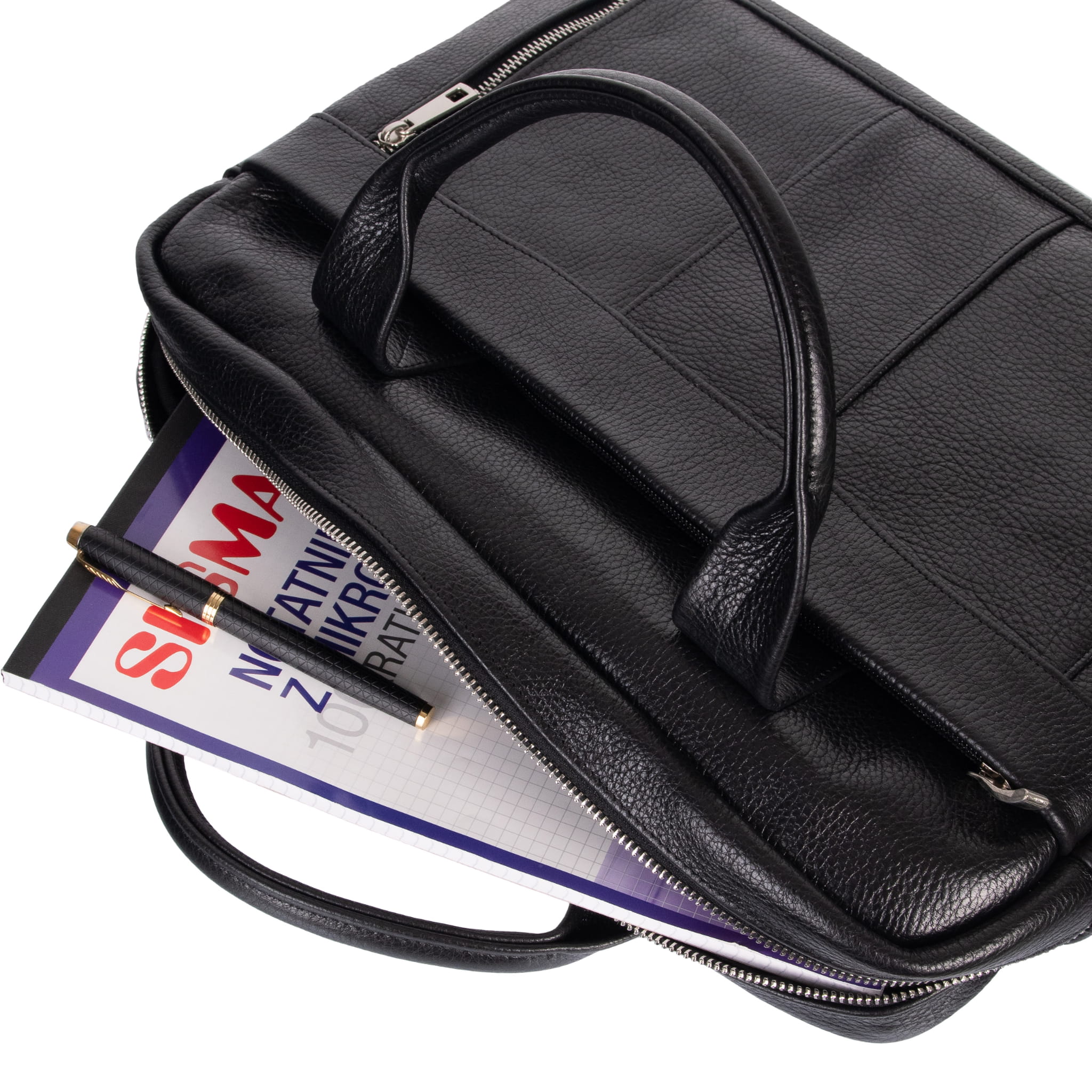 Wygodnie ułożysz w nich długopisy, wizytówki, karty biblioteczne oraz telefon. Skorzystaj także z 1 kieszonki z przodu torby i dodatkowej tylnej. Dzięki temu nie będziesz już musiał nosić drobiazgów w kieszeniach albo upychać ich w samochodowym schowku!