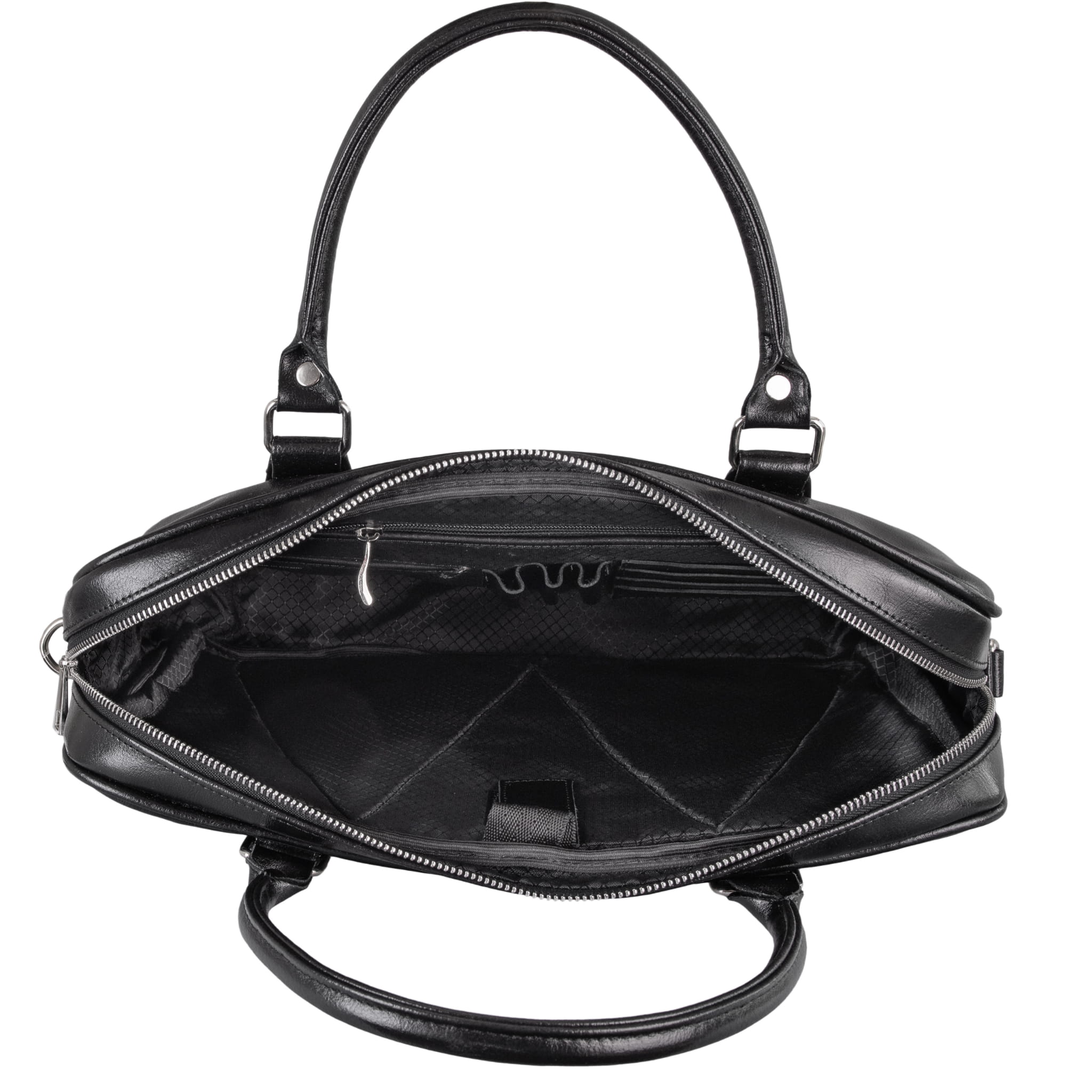 Zwróć również uwagę na wnętrze torby. W środku znajdziesz 2 pojemne komory (1 jest zapinana na rzep, aby dodatkowo zabezpieczyć np. laptop) oraz dodatkowe przegródki na mniejsze akcesoria. Jeśli niektóre drobiazgi, takie jak chusteczki albo klucze – wolisz mieć zawsze pod ręką, możesz włożyć je do tylnej kieszonki zapinanej na zamek.